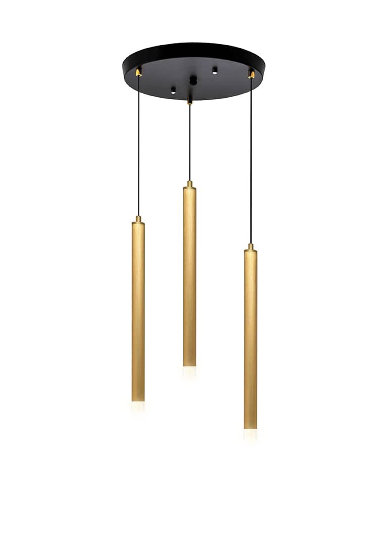 Suspension 3 Tubes Or texturé & Lentille éclairante – Leds G9 remplaçables