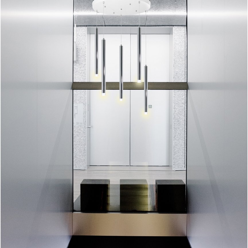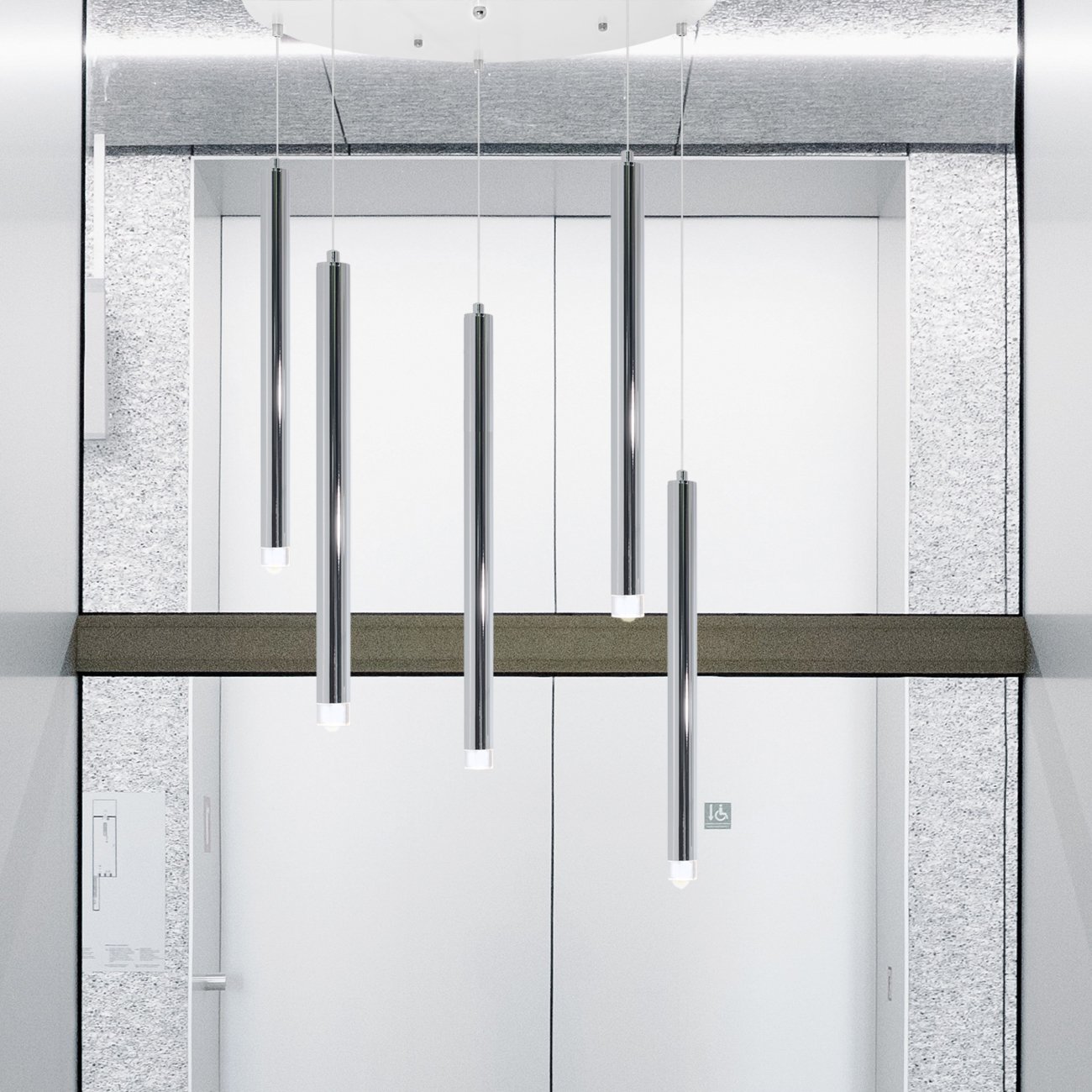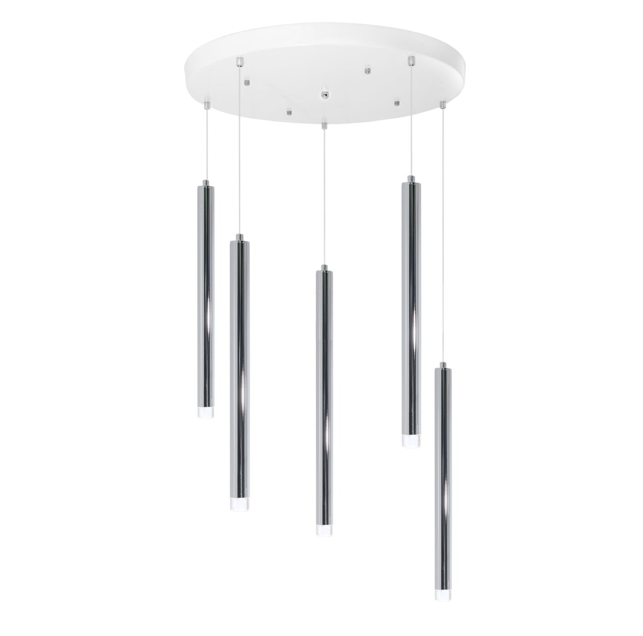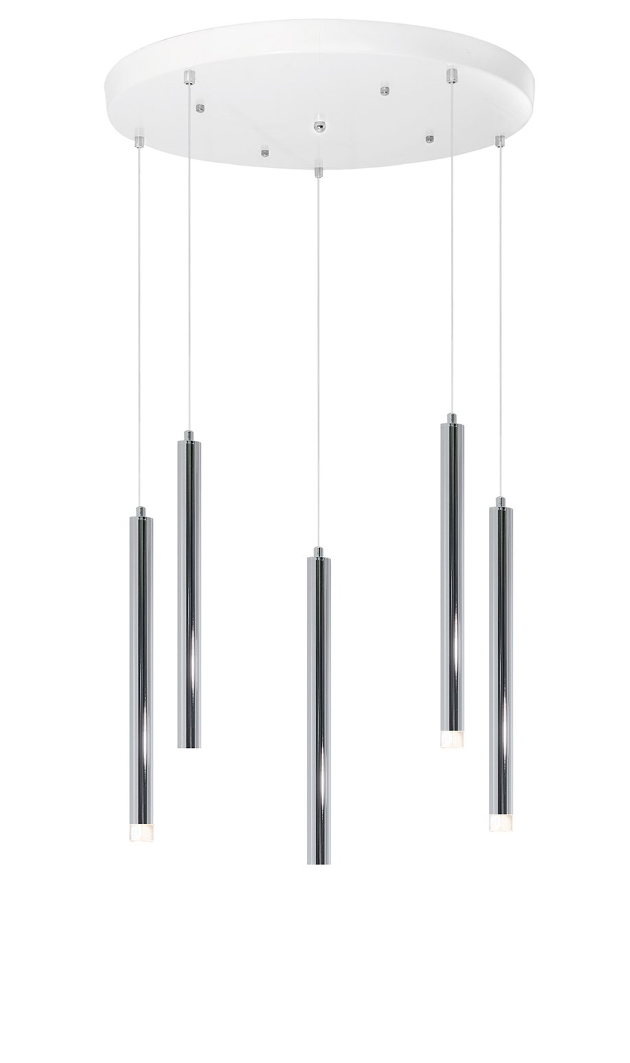Lustre de 5 Tubes Chrome & Lentille éclairante – Leds G9 remplaçables.